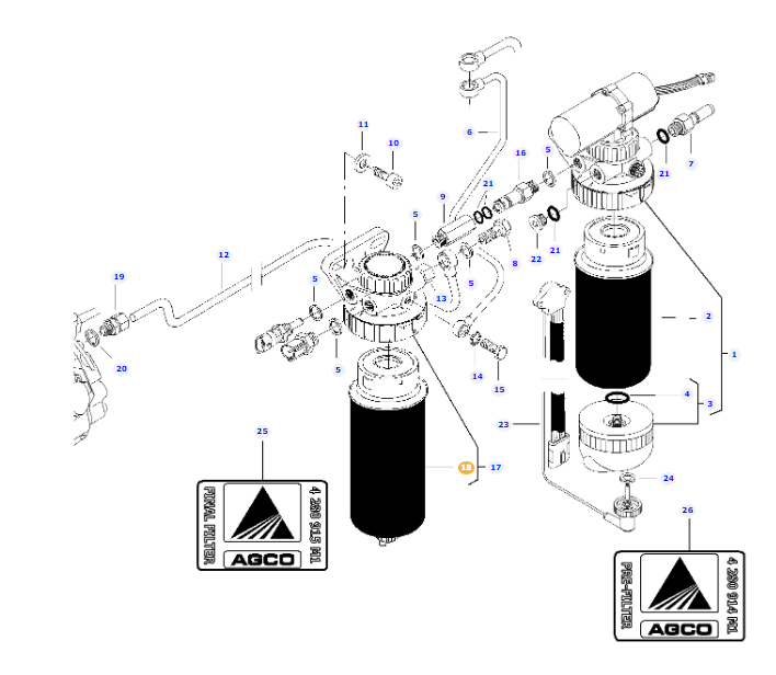 Fuel Filter V836867595 for Massey Ferguson Tractors.