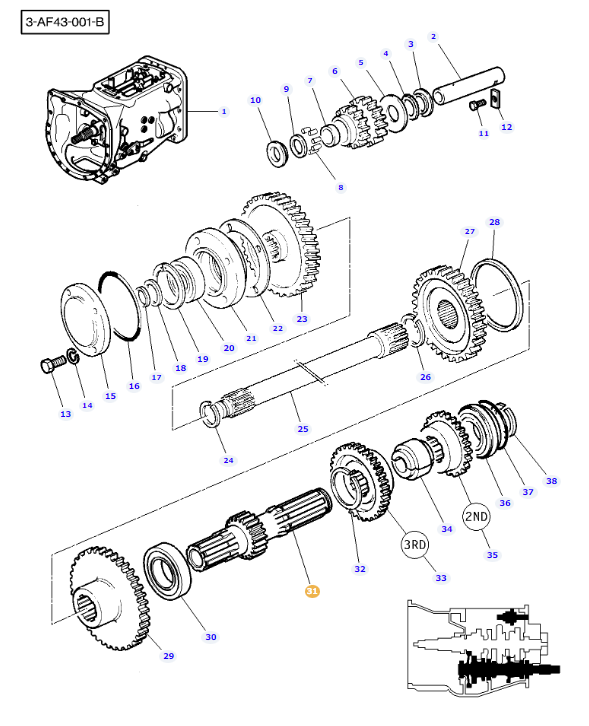 Counter Shaft 18×6 Transmission 3697812M1 for Massey Ferguson Tractors.