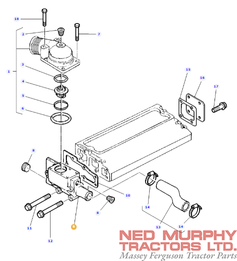 Perkins Thermostat Housing 4223515M1 for Massey Ferguson Tractors.